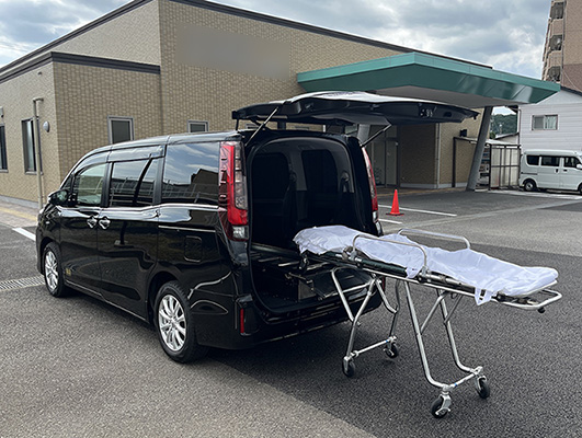 ご指定のご安置場所(ご自宅等)までご遺体搬送の為の専用車両にて丁寧にお連れ致します。